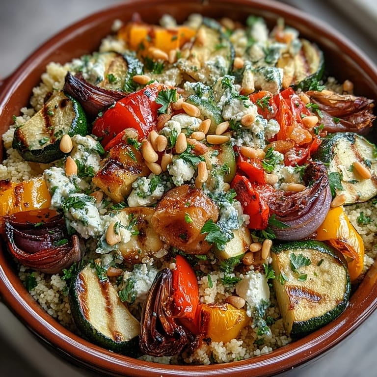 There's something almost therapeutic about layering colors into a baking dish—watching those roasted vegetables go from raw and pale to caramelized gold while the kitchen fills with oregano-scented warmth. A friend once brought this to a potluck on a drizzly autumn evening, and I realized that night that the best vegetarian dishes don't need apology or explanation; they just need good ingredients treated with care. This Mediterranean couscous bake became my go-to when I wanted something that felt both comforting and bright, especially on days when the market had just restocked with perfect peppers and fresh herbs.