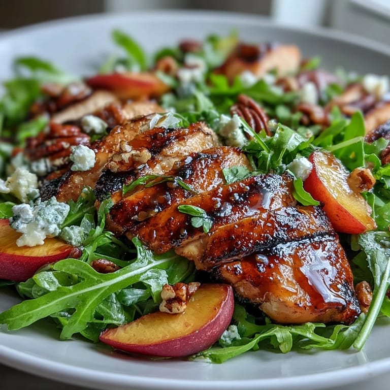 Merken Ich entdeckte dieses Rezept an einem schwülen Julitag, als ich verzweifelt nach etwas Leichtem suchte, das trotzdem satt macht. Meine Nachbarin hatte gerade Pfirsiche vom Bauernmarkt mitgebracht und ich stand in der Küche, starrte auf die goldenen Früchte und fragte mich, wie ich sie zu Hähnchen verarbeiten könnte. Das erste Mal, als ich die gegrillten Pfirsiche aus der Pfanne nahm, war ich überrascht von ihrer Süße und wie sie sich mit der Säure des Balsamicos vermischten. Seitdem greife ich immer wieder zu diesem Rezept, wenn ich will, dass sich das Essen wie ein besonderer Moment anfühlt.