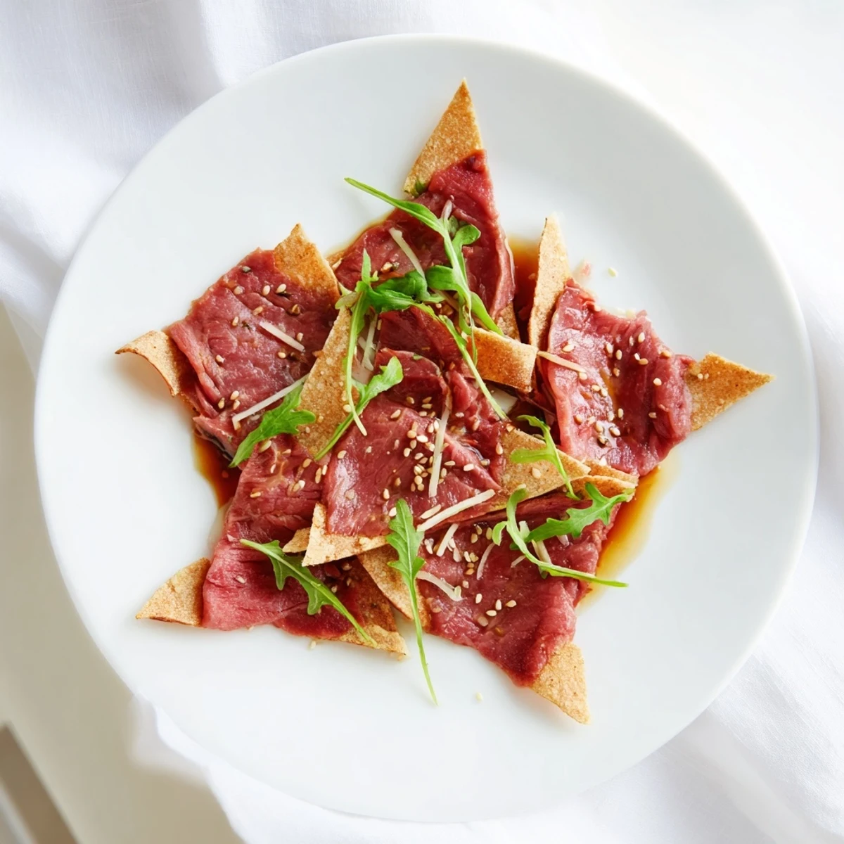 Merken Ich werde diesen Appetizer nie vergessen, weil er mich an einen Moment erinnert, als ich zum ersten Mal einen Teller durchblätterte, der wie ein Kunstwerk aussah. Ein Freund brachte elegant gefaltete Beef-Scheiben mit, die so geometrisch und raffiniert waren, dass ich dachte, man könnte sie nicht essen. Aber der erste Bissen offenbarte eine Explosion von Umami und Zitronenschärfe, die mich sofort veränderte. Seitdem falte ich diese schlanken Scheiben selbst, nicht um zu beeindrucken, sondern weil es Spaß macht, die einfachen Dinge schön zu machen.