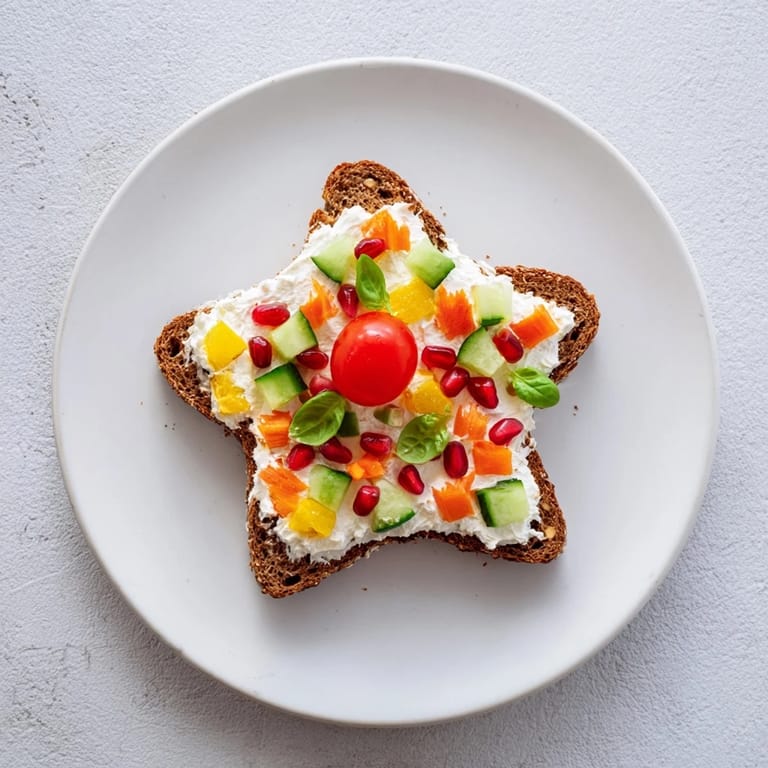 Merken Festliche und unterhaltsame Sandwiches gefüllt mit buntem Gemüse und cremigem Käse, die in Sternformen geschnitten sind—perfekt für Partys oder Kindersnacks.