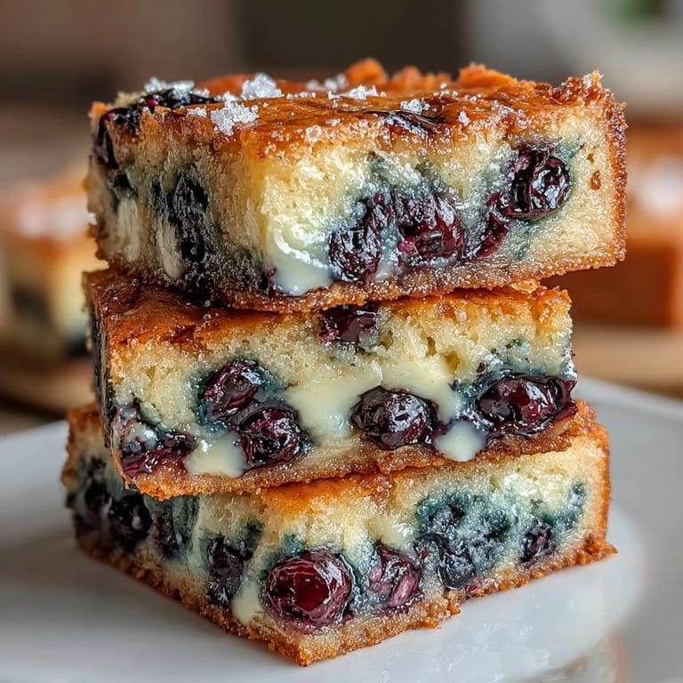 Merken My neighbor showed up at my door on a humid July afternoon with a container of these blueberry blondies, still warm from her oven, and I understood immediately why she'd been bragging about them all summer. The white chocolate melted into the brown butter created this almost fudgy base, and when I bit into one, the burst of tart blueberries cut through the sweetness perfectly. I'd never thought about using white chocolate in a blondie before, but that moment changed everything about how I approach baking with fruit.
