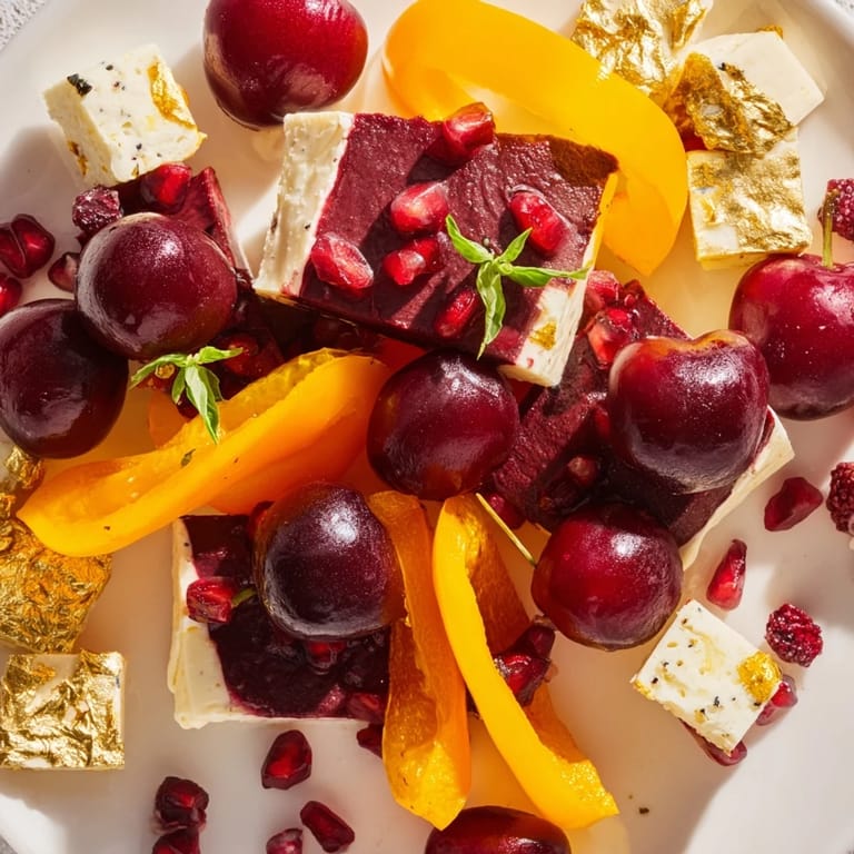 Was ich mit den Jahren gelernt habe, ist, dass unsere Augen zuerst essen. Diese Platte funktioniert deshalb so gut, weil die tiefen Rottöne und hellen Goldtöne sich gegenseitig verstärken – jede Farbe macht die andere lebendiger und satter. Es ist nicht nur nett anzuschauen, es beeinflusst auch, wie dein Gehirn die Aromen verarbeitet. Rot signalisiert Süße und Frucht, Gold verspricht Nussigkeit und Wärme. Deine Papillen wissen, was sie erwartet, bevor der erste Bissen ankommt.