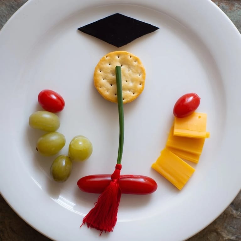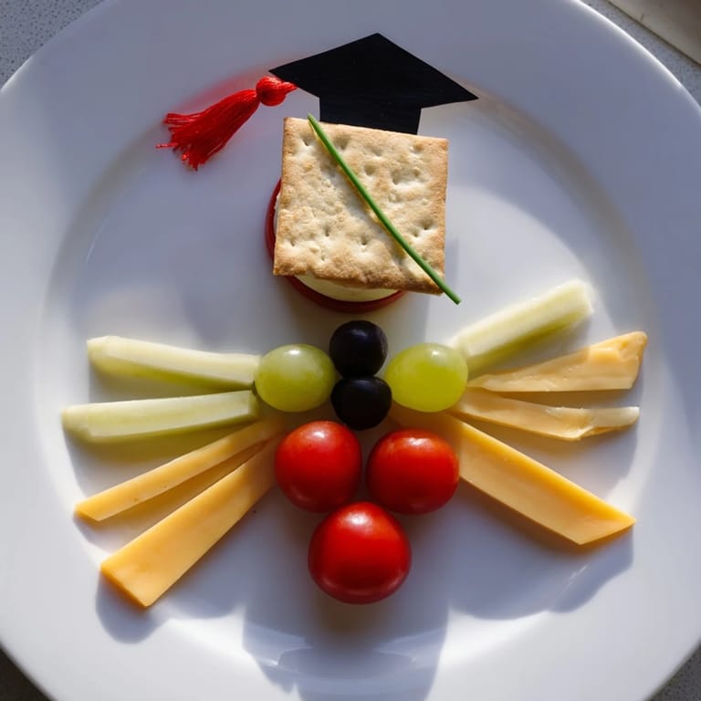 Merken Eine festliche und kreative Vorspeisenplatte, die einem Abschluss-Hut ähnelt, perfekt um akademische Leistungen mit Freunden und Familie zu feiern.