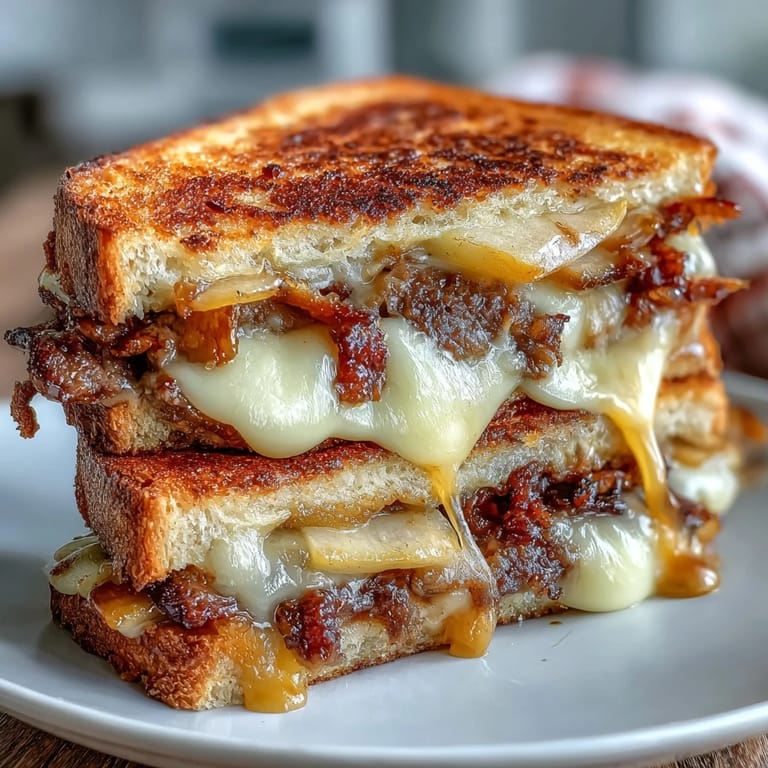 To ensure the perfect melt, use medium-low heat. This allows the bread to crisp up slowly while giving the cheddar enough time to reach a gooey consistency. Using the reserved beef bacon fat in the pan adds an extra layer of smoky flavor to the crust of the bread.