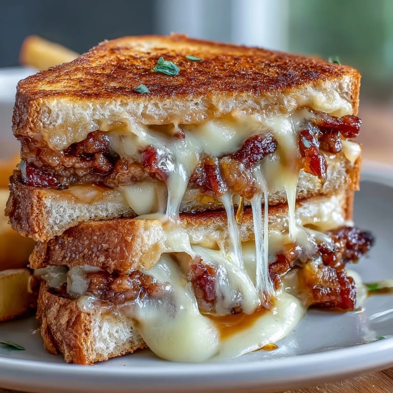 This gourmet grilled cheese pairs exceptionally well with a crisp hard cider or a lightly oaked Chardonnay, which cuts through the richness of the cheese and bacon. For a full meal, serve it with a side of tomato bisque or a light seasonal salad.