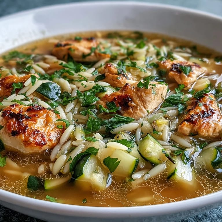 Merken There was this particular afternoon when my neighbor stopped by with an armful of zucchini from her garden—the kind of surprise visit that catches you unprepared but somehow perfectly timed. I had chicken in the fridge, a lemon on the counter, and that restless feeling of wanting to make something warm and bright all at once. What came together was this soup, and by the time she left an hour later with a bowl tucked in her hands, I knew it would become something I'd make again and again.