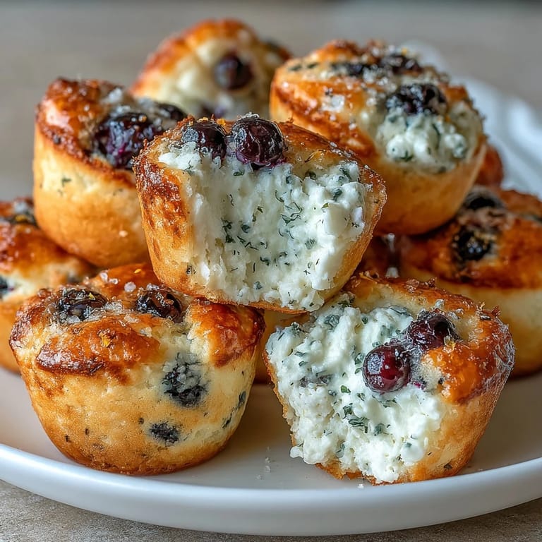 Merken I discovered these little blueberry bites on a Tuesday morning when I was frantically searching for something to bring to a neighbor's coffee gathering and realized I had cottage cheese sitting lonely in the fridge. Instead of tossing it, I wondered what would happen if I treated it like a secret ingredient rather than a breakfast staple, blending it into something entirely different. The result was surprisingly light, naturally sweet, and packed with protein in a way that felt almost sneaky. My neighbor asked for the recipe before finishing her second bite, and I've been making them ever since.