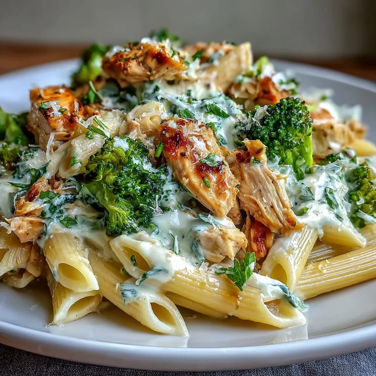 Merken Das erste Mal, als ich diese Pasta nach einem anstrengenden Tag im Gym kochte, war ich total überrascht, wie cremig und sättigend sie wurde, ohne dass ich schwere Sahne verwenden musste. Das griechische Joghurt gibt eine überraschende Säure, die perfekt zum frischen Brokkoli passt. Jetzt ist das mein Go-to-Rezept, wenn ich etwas Schnelles, Proteinreiches und trotzdem Tröstliches brauche. Die Kombination aus zartem Hähnchen und knusprigem Gemüse ist einfach unwiderstehlich.