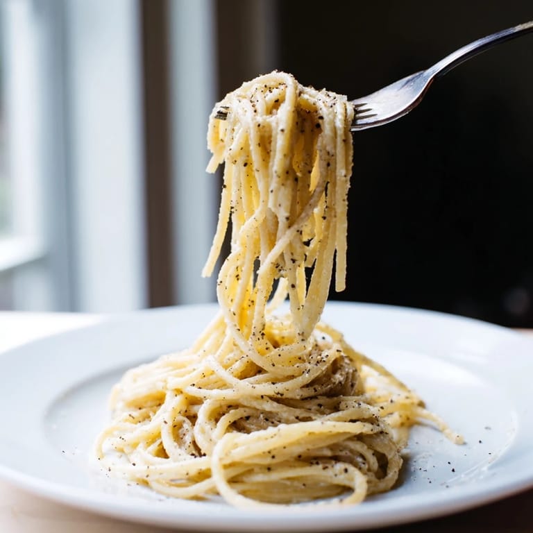 Ich serviere Cacio e Pepe gern in vorgewärmten Schüsseln, damit sie nicht sofort abkühlt. Ein knackiger Blattsalat mit Zitronendressing passt perfekt dazu. Manche mögen einen Schuss Weißwein in der Pfanne, ich bleibe lieber beim Original. Für eine mildere Version kannst du die Hälfte des Pecorino durch Parmigiano Reggiano ersetzen.