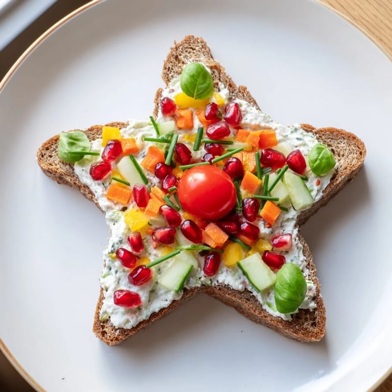 Merken Festliche und unterhaltsame Sandwiches gefüllt mit buntem Gemüse und cremigem Käse, die in Sternformen geschnitten sind—perfekt für Partys oder Kindersnacks.