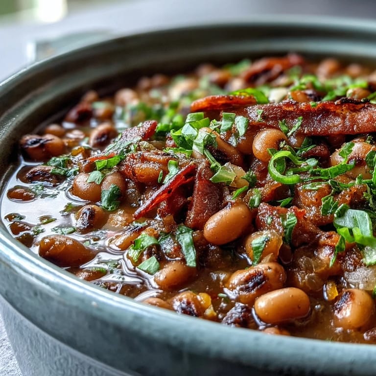 Merken Ich erinnere mich an diesen kalten Januartag, als meine texanische Nachbarin Mrs. Johnson einen Topf mit diesem duftenden Eintrog an meine Tür brachte. Der Rauch von Bacon und die Wärfe von Chili powder zogen mich sofort in ihren Bann. Seitdem ist dieses Gericht fester Bestandteil meiner Küche, besonders wenn Freunde zum Essen kommen.